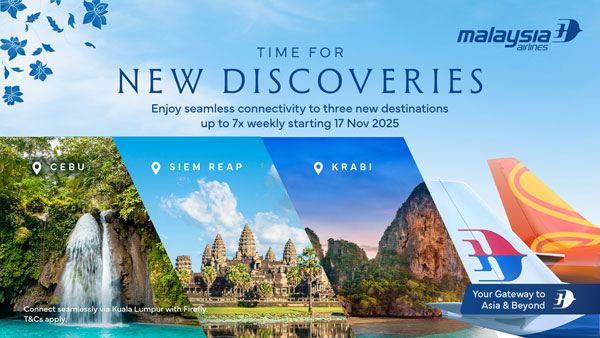Travellers flying from Sri Lanka, Australia, New Zealand, the UK, France and beyond with Malaysia Airlines can now conveniently connect onto Firefly’s expanding regional network, with new routes launching to Krabi (Thailand), Siem Reap (Cambodia), and Cebu (Philippines). The campaign, running until 2 November 2025, offers attractive fares for travel up to 31 August 2026 via the Malaysia Airlines website and mobile app.