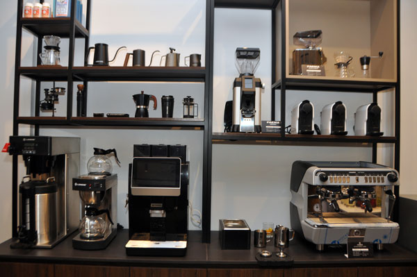 Rinosh personally selected the range of coffee machines offered at the studio after extensive research abroad, including home-use models, entry-level café machines, and high-end professional setups.