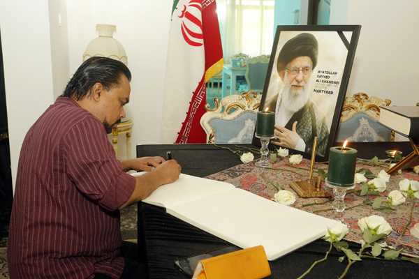 A condolence book has been opened at the residence of the Iranian Ambassador in Colombo for those wishing to express their sympathy and solidarity with the Iranian people over the death of the late Supreme Leader of Iran Ayatollah Ali Khamenei and other Iranians who have been killed in attacks by the U.S. and Israel.