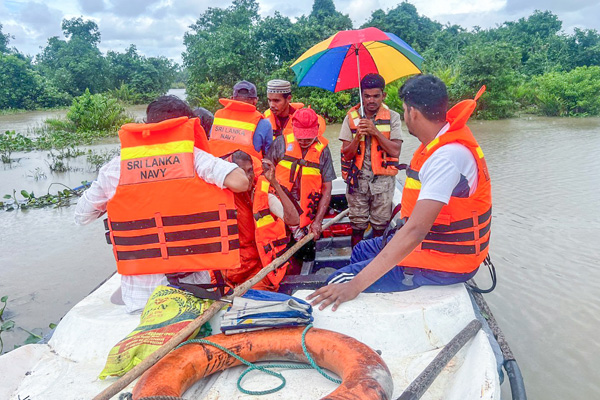 In response to severe flooding caused by heavy rainfall, the Sri Lanka Navy swiftly deployed its relief teams to Trincomalee and Ampara this morning (28 Nov 25).