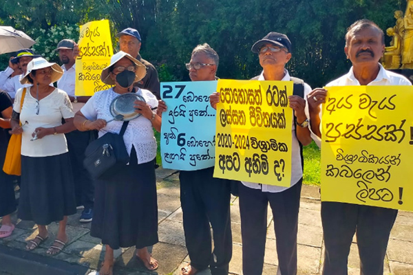 Pensioners have called opposition Leader Sajith Premadasa to campaign on their behalf to gain their demands, after they claimed that the government failed to address their issues through the Budget proposals.