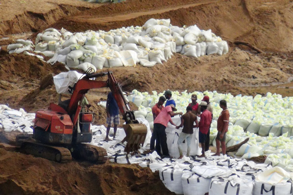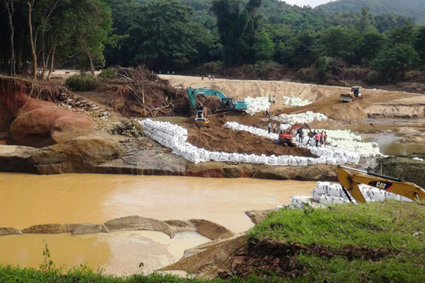 Army and farmer groups shore up Elahera anicut with sandbags after breach cuts irrigation supply