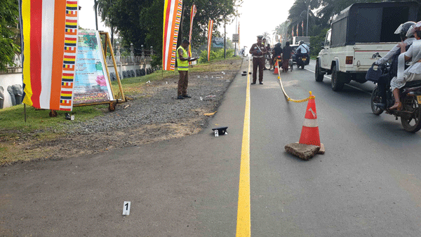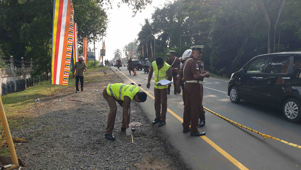 The incident occurred at approximately 2:30 am at a roadblock near the Walawe River Bridge in Ambalantota. According to the police, a car travelling towards Ambalantota was ordered to stop by officers; however, the driver had ignored the command and swerved the vehicle into three police officers.