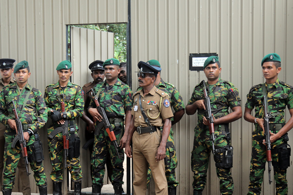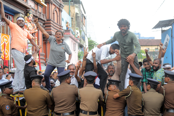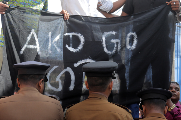 Outside the courts, a large crowds were presented with some of them hold placards in support of Mr Wickremesinghe.
