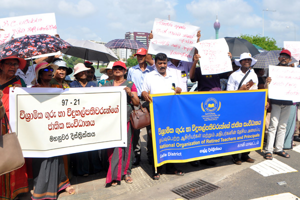 Retired Teachers and Principals today protested in Colombo claiming that those who retired between the 1997 -2021 were affected by anomaly in pension payments.