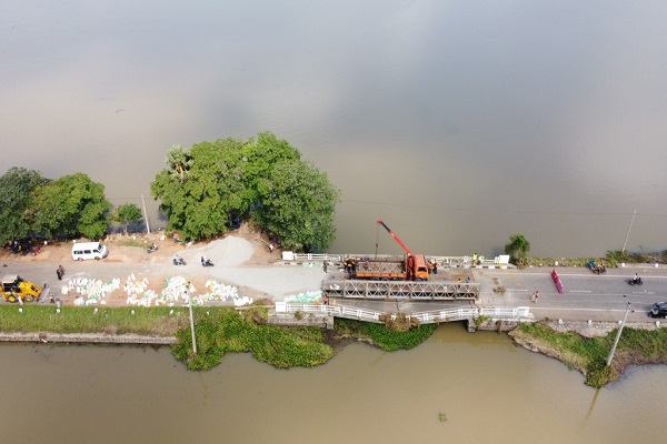 The Army with the help of the Road Development Authority (RDA) commenced putting up a temporary bridge in Thabbowa in place of the bridge that was washed away.