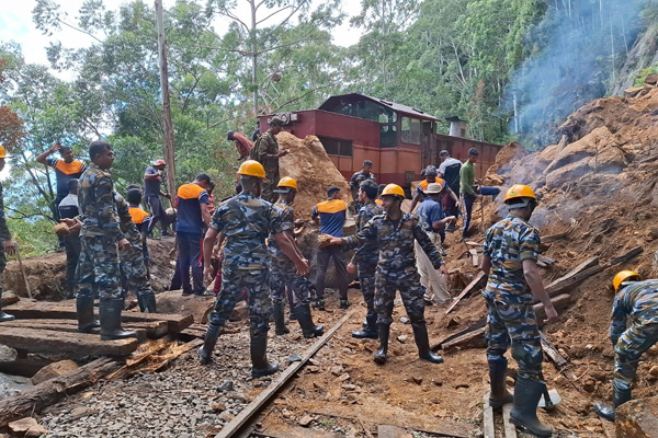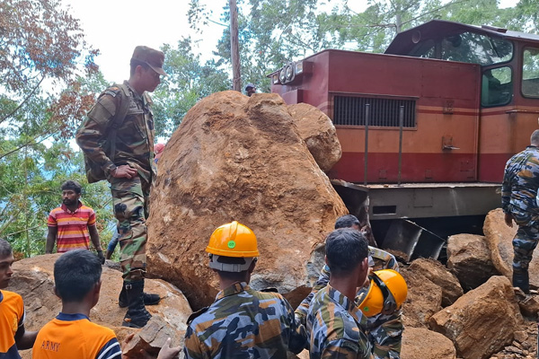 In pix: A train was derailed between Idalgashinna and Ohiya on Tuesday night after a couple of boulders toppled to the track when a train was moving. As a result upcountry trains have been disrupted.