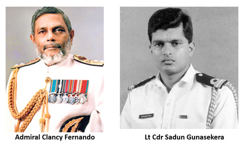 (I would be failing in my duty if I did not express my sincere appreciation to, Admiral Ravi Wijegunaratne, RAdm Shemal Fernando, RAdm Sisira Jayakody, RAdm Dimuthu Gunawardane, Cdr Kumar Mantiratna, AVM Janak Wanigatunge, Maj Gen Dhammika Pananwela, Sadun’s brother, Attorney- at- Law Bandujeewa Gunasekera, Admiral Clancy Fernando’s son, Mr Nishan Fernando, and Mr Kumaratissa Edirisinghe for their invaluable assistance extended in compiling this article)