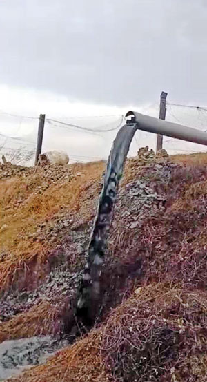 - Video grab by fishermen: Black effluent being pumped out from the farm