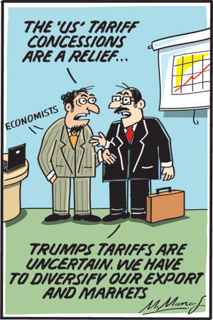 If the tariff wars continue, our exports could be seriously jeopardised by the high tariffs in our main markets. In this inhospitable and uncertain climate for trade, we must increase our exports to EU countries by removing the required conditions on human rights expeditiously. The UK’s gesture to reduce tariffs on Sri Lanka’s exports, as well as the prospects of increased exports to Canada, are opportunities that must be exploited.