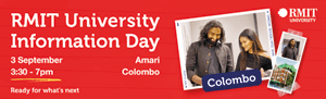 RMIT is excited to be hosting an Information Day at Amari Colombo, on 3 September at 3:30pm!