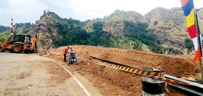 A new sand barrier is being built at the site where the bus tragedy occurred. Pix by Prasad Rukmal