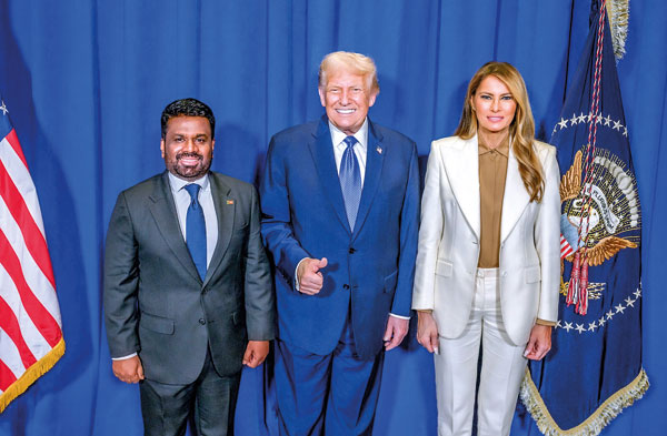 View(s):President Anura Kumara Dissanayake poses for the traditional photograph with US President Donald Trump and First Lady Melania Trump upon arriving for the dinner reception hosted by the US President for world leaders at the Lotte New York Palace Hotel on Tuesday. In an X post yesterday, President Dissanayake said, “Engaged in a cordial discussion with President Trump.”
