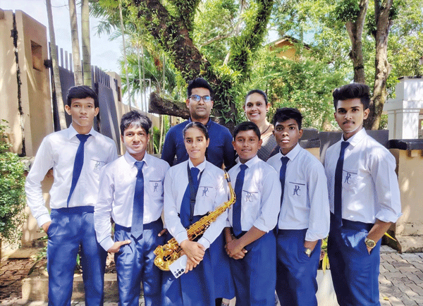 The picture shows, from left to right, Sanahasa Imandiv, Romain Vibodha, Nethmi Meleesha, Kane Fernando, Shenol Fernando and Sadew Chamodh with the Coach Mr. Suneth Jayasanka and Western Music Teacher