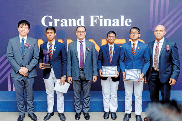 The champions of the High School Challenge 2025 were Trinity College, Kandy, whose project, “Teatint – Tea-Based Printer Ink,” impressed the judges with its innovative and impactful solution. The team members, Rehan Anandakumar, Chantry Senhas Maggonage, and D.C.D. Jayasinghe were awarded three Apple iPads in recognition of their outstanding performance.