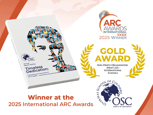 View(s):The Overseas School of Colombo (OSC) has once again achieved international success, claiming Gold at the prestigious International ARC Awards in New York for its 2023/24 Annual Report, “Timeless Dedication: Celebrating the Faces Behind Our Progress.”