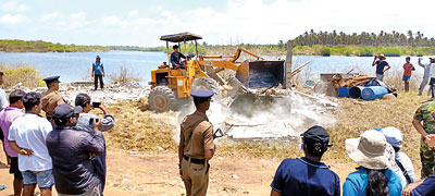This week an attempt was made to remove 12 unauthorised structures by a team of 30 officers from the Police Special Task Force’s (STF) Puttalam Camp and Chilaw Police Headquarters, but they faced objections.