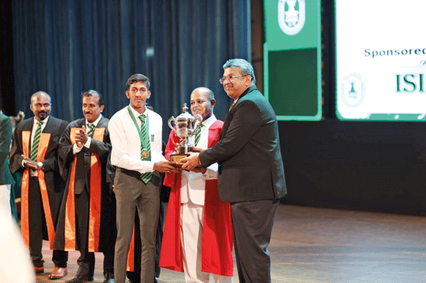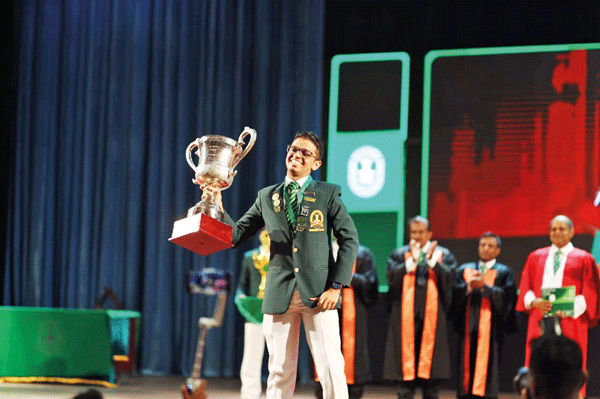 Most Outstanding Student of the Year 2024: Malinda Priyangana Jayakody with the trophy. Also in the picture (from left) are D.W. Dilanka Ranaweera (Deputy Principal), J.A.W. Rajapaksha (Deputy Principal) and Darshana Udawattage (Principal)