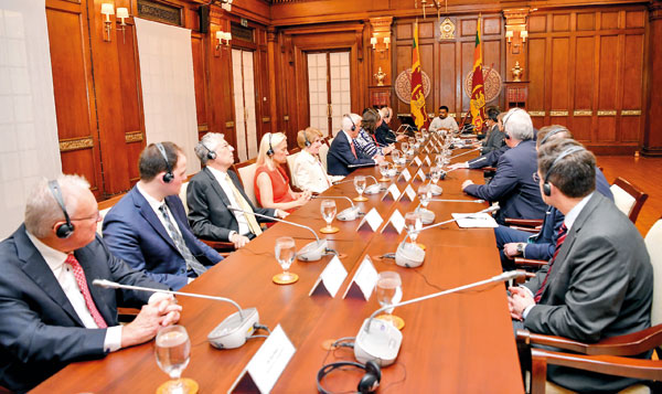 President Anura Kumara Dissanayake is seen holding talks with a visiting 17-member US investors delegation at the Presidential Secretariat yesterday. The visit follows the release of a US State Department report