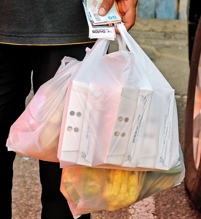 Several stores and outlets declared that prices of small and big shopping bags are fixed at Rs 3 and Rs 5. However, customers face a new challenge of how to get the balance money when they are paying for a shopping bag since many traders are saying there is no change.