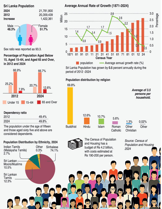 The 2024 National Census by the Department of Census and Statistics, reveals a rapidly ageing population and notable ethnic shifts.