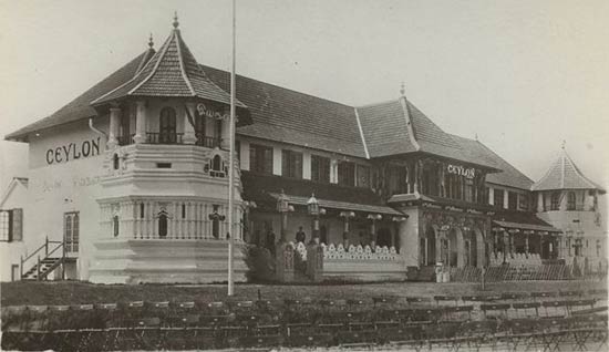 The Wembley exhibit a hundred years ago: The wooden Ceylon pavilion constructed by Don Carolis, styled after the Paththirippuwa of the Temple of the Tooth