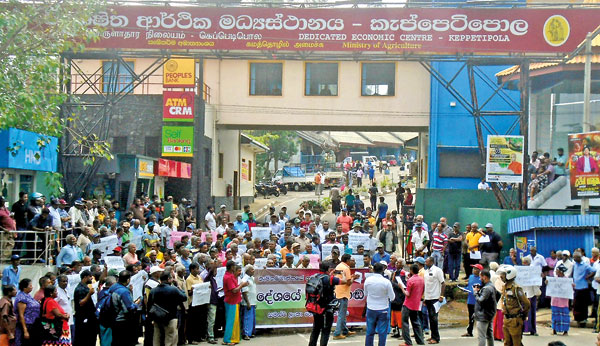 The all island potato farmers association held the protest in front of the Keppetipola dedicated economic centre on Monday.
