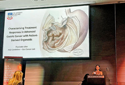 Continuing her active involvement in the research community, Tharindie recently attended the ASMR SA Gala Dinner, where she presented her work and connected with fellow researchers. The evening featured inspiring addresses, including one by Dr. Daniel Timms, inventor of the BiVACOR artificial heart, as well as remarks from Hon Chris Picton, the Minister for Health and Wellbeing, both offering powerful reminders of how innovation and leadership continue to shape the future of medical science. Tharindie’s precision medicine research in gastric cancer has earned multiple nationally recognised awards throughout her PhD, highlighting the significance and impact of her work.