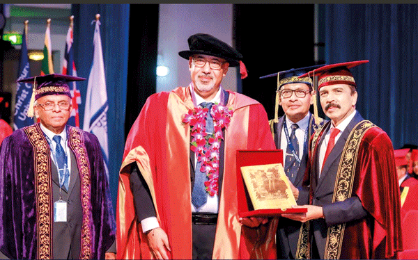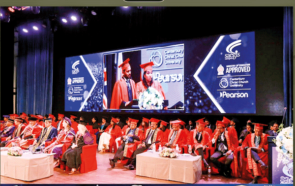 Being one of the premier higher education institutes in Sri Lanka governed under the leadership of Mr. Bandara Dissanayake’s Chairmanship, Saegis Campus is dedicated to gift multi-faceted performers and true leaders to the world, it held its annual convocation on the 21st of November 2025 at the BMICH Colombo in the presence of the Vice Chancellor Major General Milinda Peiris (Retd), the Pro-Vice Chancellor Professor Mohamed Abdel-Maguid (Education, Student Growth and Global Engagement) Canterbury Christ Church University, United Kingdom and the Chairman and the Deputy Vice Chancellor Senior Professor Emeritus W. G. D. Dharmaratna. It was graced and held with glamour under the distinguished patronage of renowned guests of CCCU UK Dr. Lorna Thomas, Michelle Childs, Ms. H.D. Chandima Janaki, Additional Secretary (Non-State Universities), Ministry of Education. Suriya Bibile, Regional Manager, South Asia, Pearson, members of the Governing Council, and distinguished academia of Saegis Campus, scholars, parents, and the graduands. The presence of CCCU academia and the Ministry of Education, Sri Lanka, further demonstrated the Campus’s mounting reputation and expanding network.