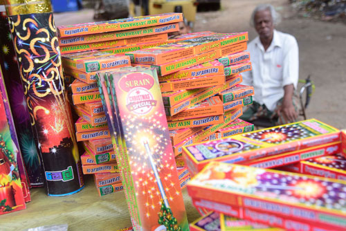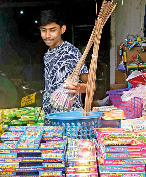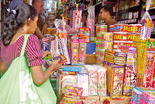 Low key celebrations and high prices of fireworks kept buyers away . Pix by Akila Jayawardene