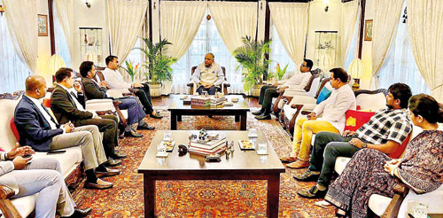 The delegation comprises SJB MPs Chitral Fernando, Chamidrini Kiriella, Chatura Galappatti, and Prasad Siriwardena; SLPP MP Namal Rajapaksa, former MPs Indika Anuruddha, Sanjeewa Edirimanna, and Sampath Athukorala; and Political Bureau member Milinda Rajapaksa.