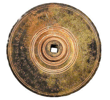 One casket was found within the mound at a height of 24 feet from the base, made out of green schist. This casket is inscribed and holds a copper box, gold and silver foil along with other materials. The inscription on the casket is in Brahmi script and Sanskrit language and read, ‘dashabala sharira nilay,’ (the abode of the Body Relic of Lord Buddha).