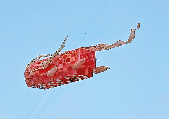 Prakash, who works in a welding shop, uses his spare time to design kites. For this year’s competition, he also designed another massive kite—an airplane that drops relief packages—which took third place.