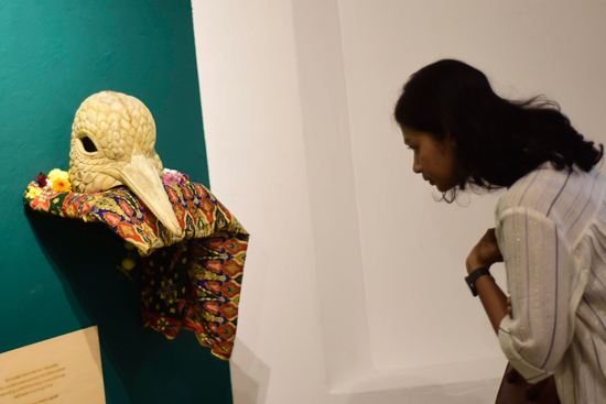 A creation at Barefoot Gallery and below, art enthusiasts at the opening. Pix by Akila Jayawardena
