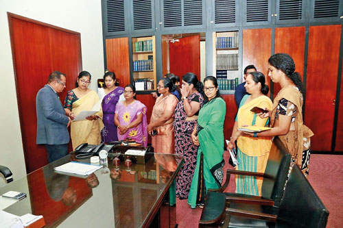 Women MPs handing over their petition to Speaker Jagath Wickramaratne
