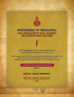 The early pages of this book trace the evolution of Sri Lanka’s medical services during the British period, highlighting the central role played by leaders of the Ceylon Branch of the British Medical Association (re-named the Ceylon Medical Association in 1951 and Sri Lanka Medical Association after 1972 ).