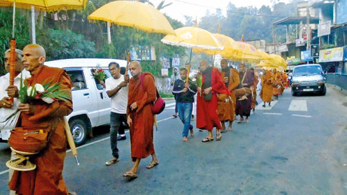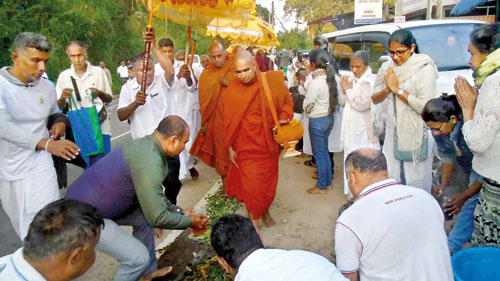The pilgrimage (Shramanabhi Sakmana) with the participation of 50 monks in the forest began on the 22nd from the Madanwela temple in Haguranketha. The monks then visited Padiyapellella, Walapane, Nildandaheena, Udupussallawa, and Welimada town, which were affected by the landslides.
