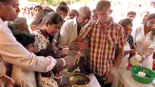 Following an almsgiving held at the residence of Gamini Wijesiri, the Badulla Commissioner of the St. John’s Ambulance service in Welimada, the monks held a sermon on the Welimada-Badulla road, close to the place where the couple who died after a landslide collapsed on their house in Bhagili Ella on the Welimada-Badulla road.