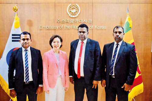 A team sales team from the Sunday Times met with Malaysian ambassador Badli Hisham bin Adam and South Korean ambassador Miyon Lee. The team included Head of Circulation & Subscription Ranjith Rupasinghe, Subscription Manager Kapila Henry, and Sales Manager Sumith Dissanayake.