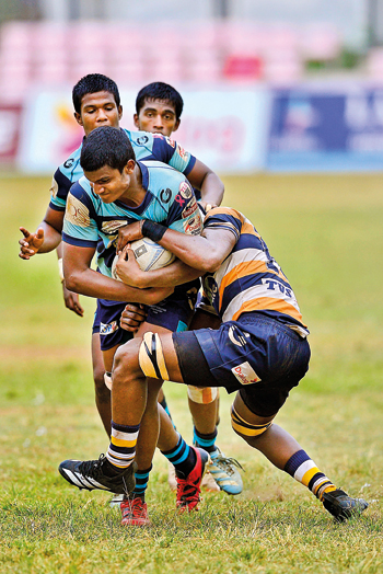 Wesley were perfectly countered and contained by the Peterites, who struck again in the 14th minute with a brilliant try off the left from scrumhalf Shirash Perera, who received the ball following a perfect run and a timely offload. With Rajith’s brilliant kick at goal, the Peterites took the lead by 14-10. Wesley received their first blow when prop Abdul Rahman was sent off for a yellow card offence soon after the try.