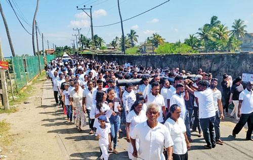 The procession, over 3km long, started at Dikowita St Anthony’s Church and ended at Palliyawatta St Carmel Church.