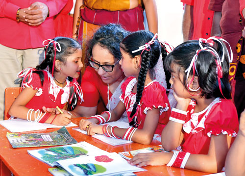 Prime Minister Harini Amarasuriya is seen interacting with children during a New Year event held in Gampaha.